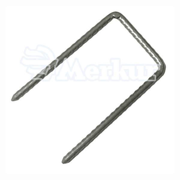 Garfios plateados hechos de alambre de acero, sirven para sujetar las bandas demarcatorias del área a utilizar según el deporte, sus medidas son de 10 cm de largo por 5 cm de ancho.